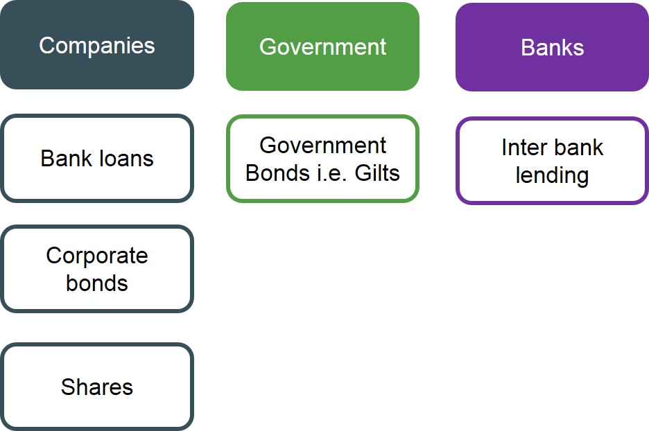 Below is a table to illustrate the methods in which different economic agents can obtain finance.