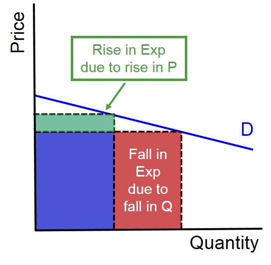 Below is a diagram to highlight the changes in expenditure that occurs when there is a small price rise. When a demand curve is relatively elastic, it means that consumers are sensitive to price changes. In this instance, a small price rise leads to a large fall in demand as consumers switch to alternative cheaper substitutes.