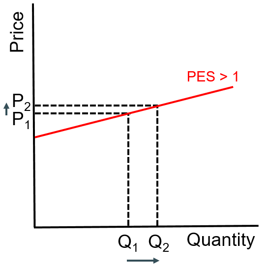When the proportionate change in supply is greater than the proportionate change in price. In this case the PES value will be greater than 1.