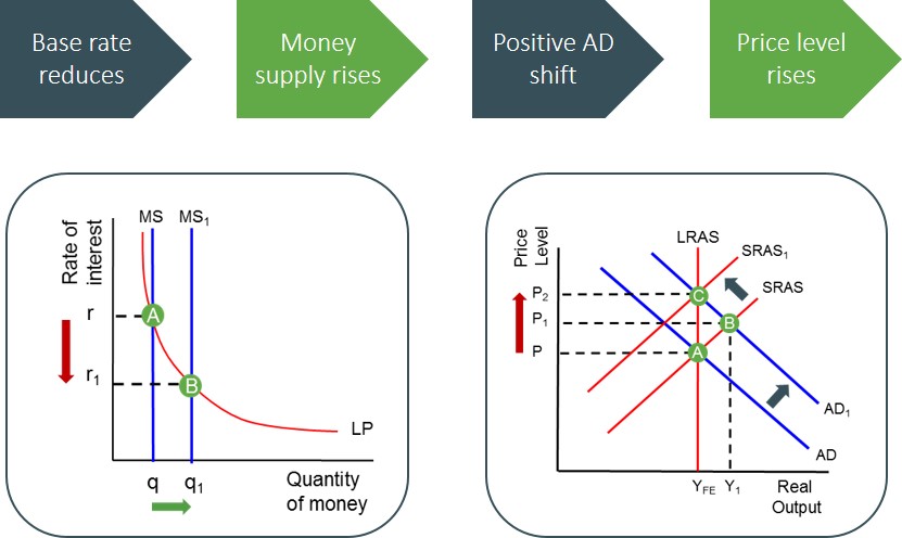 Assuming no accompanying LRAS curve shift is created this creates demand pull inflation and this can lead to an inflationary spiral, which is not always a problem for the economy, as this type of inflation arises from higher consumption, economic activity and results in growth. But, it is important to note that if the inflation rate becomes too high and volatile it becomes unhelpful as it undermines confidence and competitiveness in the long-run.